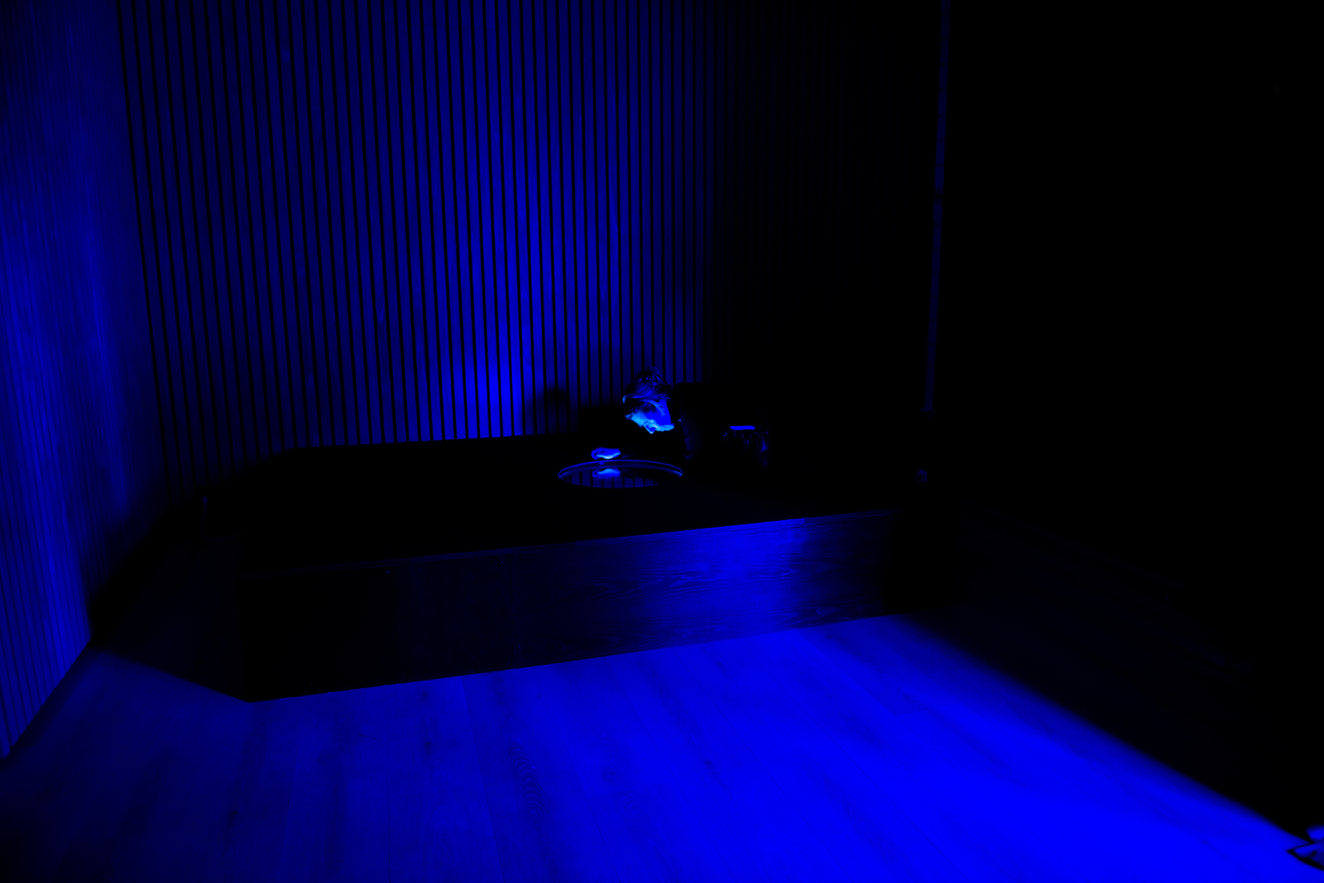 Dimensioner på ‘glashullet’: 55cmØ. Dimensioner på podium: 180 cm x 210cm x 42 cm